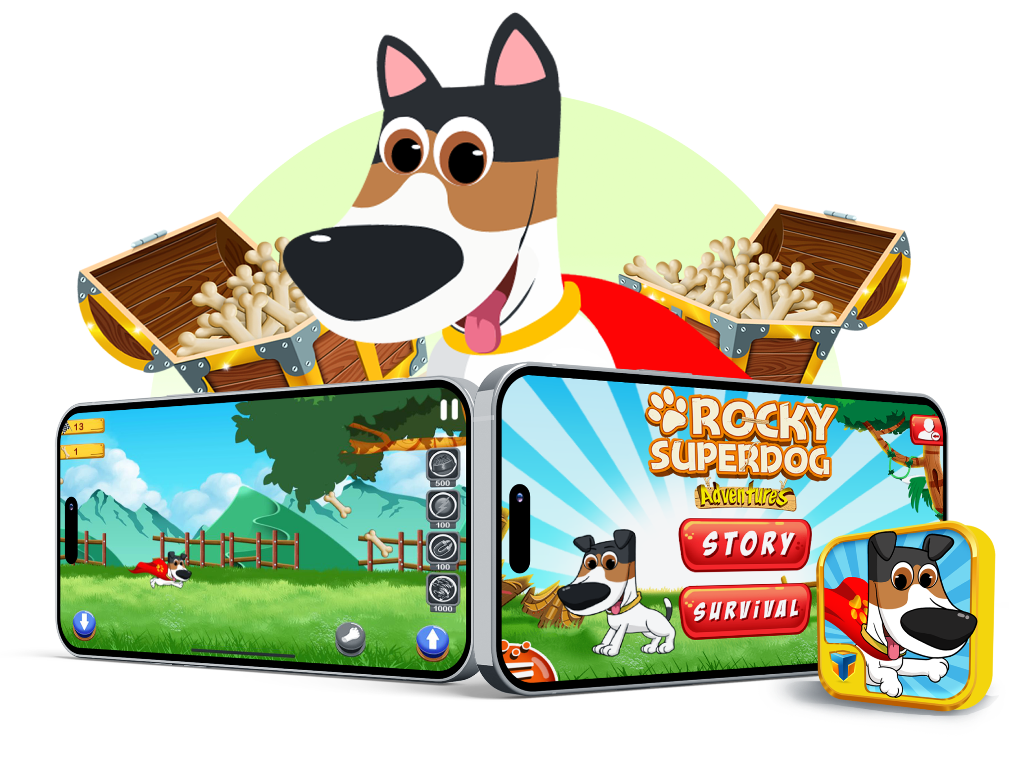 Dive into the adventures of Rocky Superdog! Our engaging game offers fun and excitement for everyone, showcasing our team's creativity and passion for software development beyond business solutions.